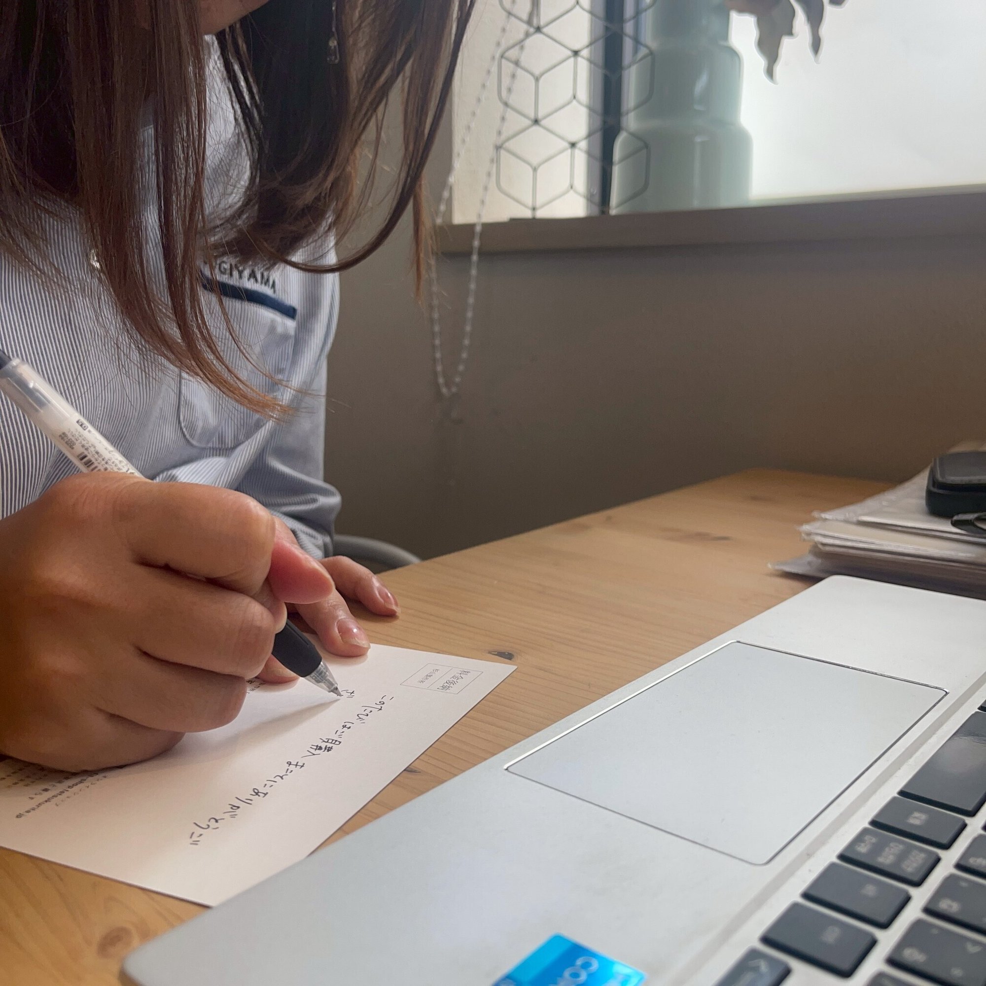 そんなキモチが少しでも伝わるよう、オンラインショップで購入してくれたお客さまには毎回手書きでお礼のメッセージカードを作ってお届けしています。