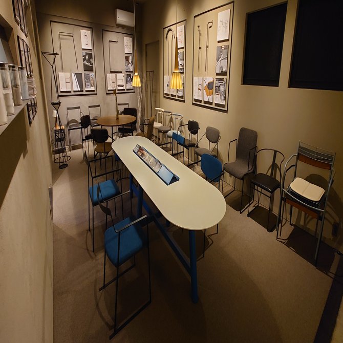 ミラノ本番では洗練された空間づくりで世界観を表現しますが、現在はショールームで皆さまにいち早く、そして気兼ねなく製品に触れていただけるよう、あえてざっくばらんな雰囲気で展示しています。