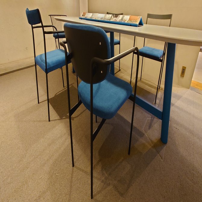そして、私が愛してやまない「PFアームチェア」にも、この展示に合わせたブルーの張地バージョンが登場しています。