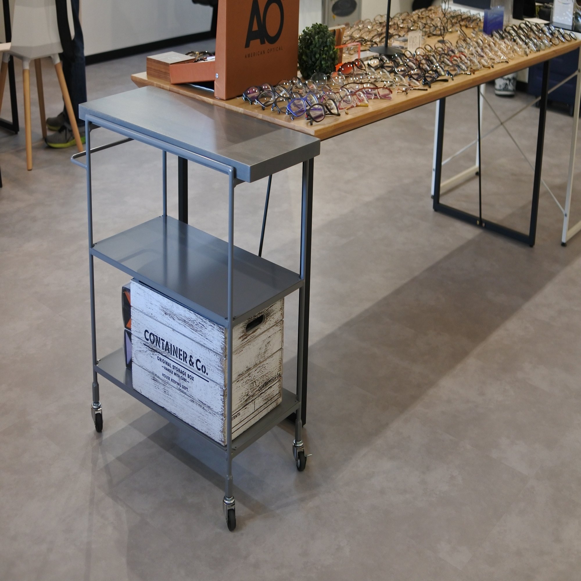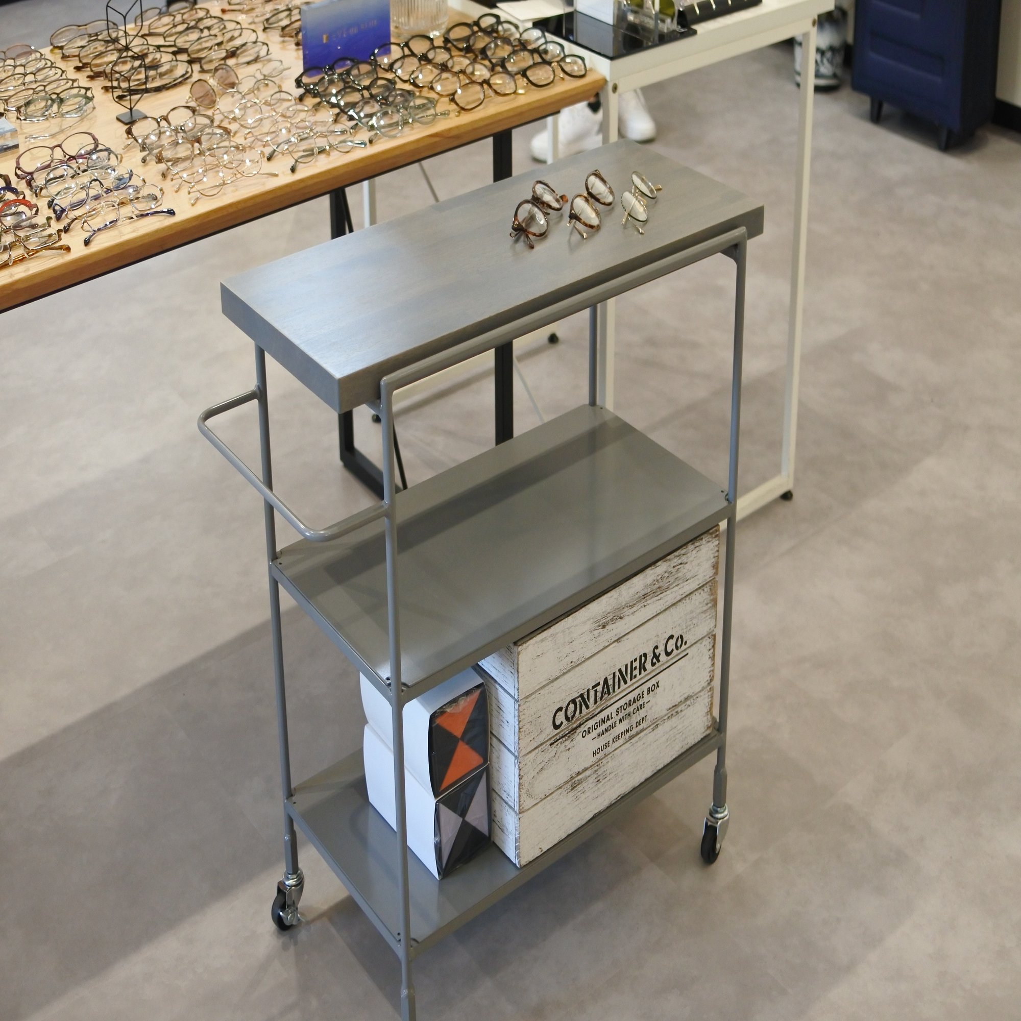【眼鏡屋さんでのアイアン家具実用例】POCHIとワゴンの活用法をご紹介。
