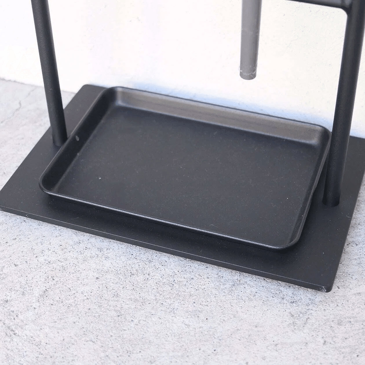 一見ひとつ前に紹介したクロテツ傘立てに似ていますが、こちらはフレームがすべて丸棒で、塗装はサンドブラックなので全体的に優しい印象です。
